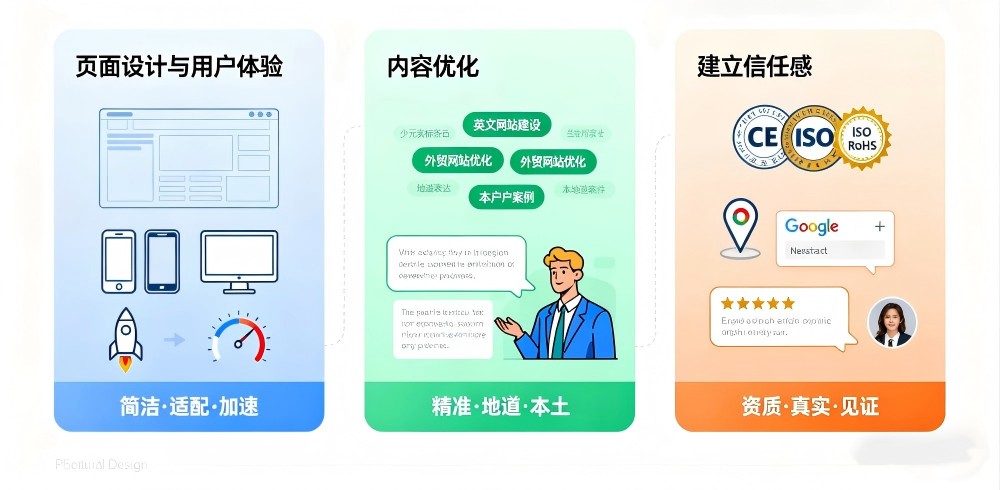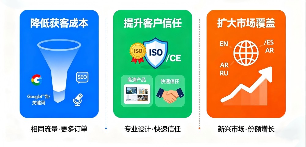 在跨境贸易中,买家面对的是陌生的供应商和不确定的市场环境。一个经过优化的网站可以通过专业的设计、清晰的产品展示、权威的认证信息和流畅的交互体验,帮助企业快速建立客户信任。