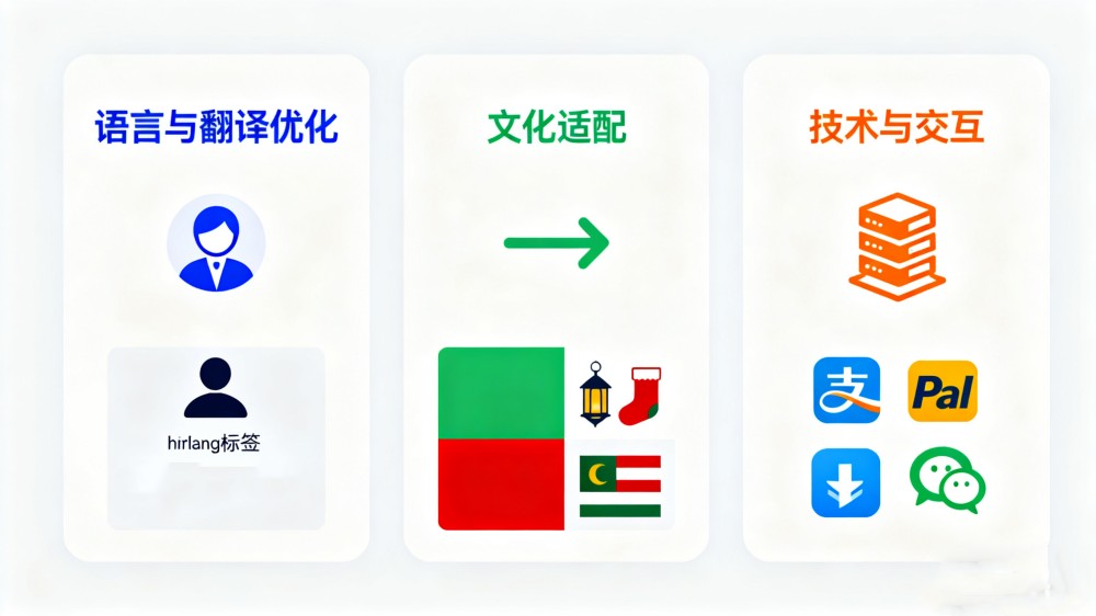 多语种SEO:针对不同语言设置 hreflang 标签,避免因重复内容影响谷歌排名。 - 文化适配